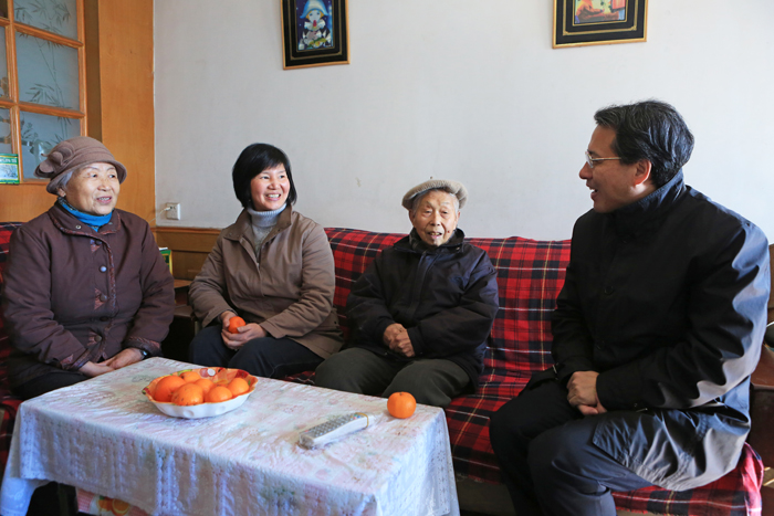 韩全林一行在夏国春总经理的陪同下,来到公司退休老领导朱道洪和省劳模丁开德家中,详细了解他们的生活和身体情况,对老劳模、老同志为江苏水利作出的贡献表示感谢。他叮嘱老同志们要注意保健,加强锻炼,平和乐观地安度晚年。