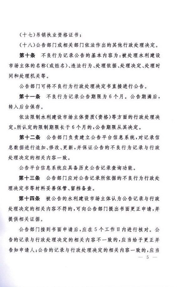 水利建设市场主体不良行为记录公告暂行办法